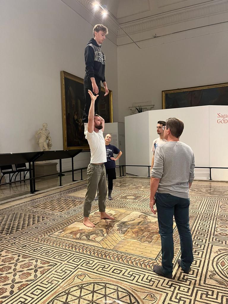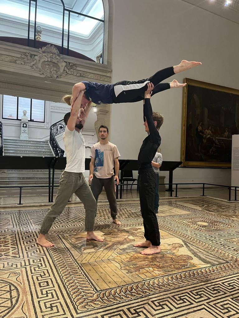 The TRICLINUM show is now ready to go on tour. The premiere took place on the original mosaic, exposed to the museum of the Fine arts of the city of Nimes. For obvious reasons for all, it is out of the question to take this mosaic on tour!